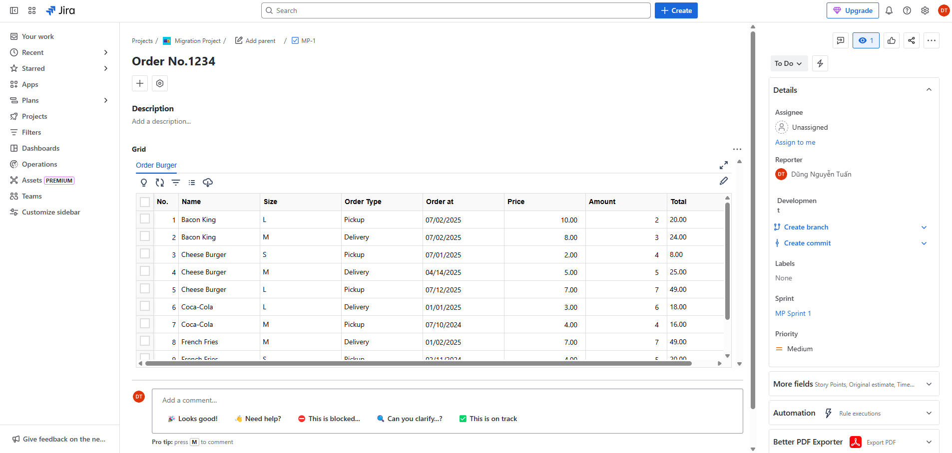 Understanding which menu items drive the most revenue is crucial for a burger restaurant. A sales report by menu item allows business owners to make data-driven decisions, such as adjusting pricing, optimizing inventory, and launching targeted promotions. Visionade enables seamless data extraction from Table Grid and visualization within Jira Dashboards for real-time tracking.
